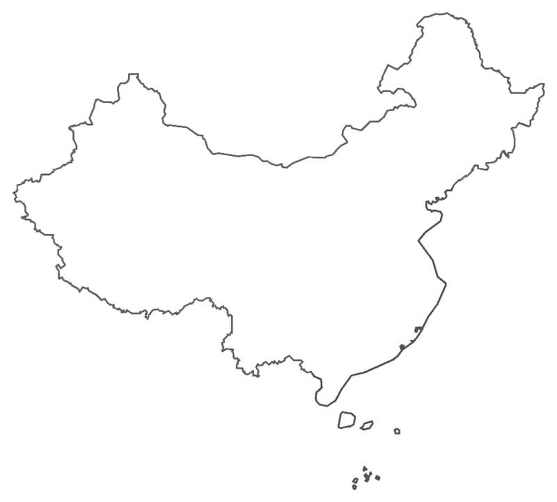 Description: Blank map of China with only the border.