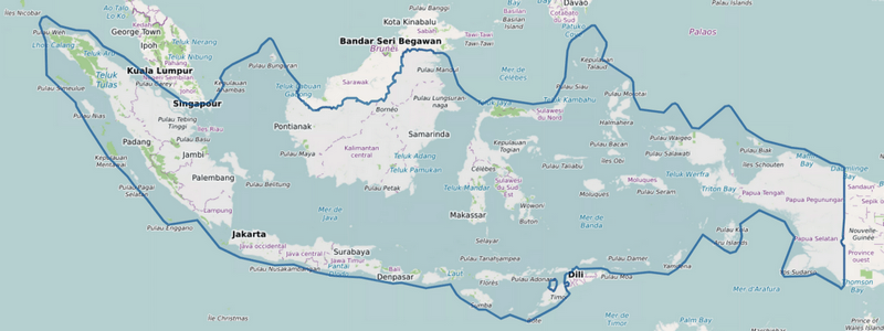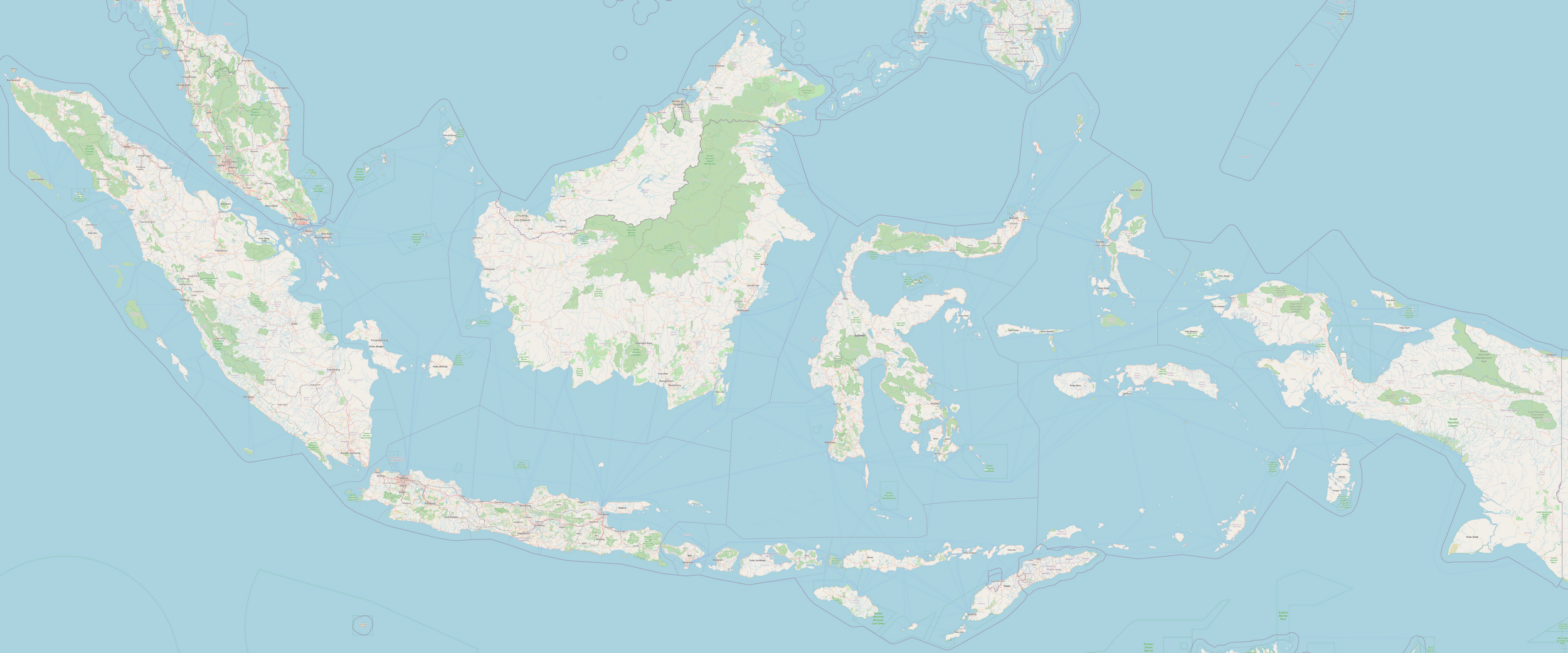Description: Large, detailed map of Indonesia with roads, cities, towns, forests, rivers, lakes, and islands. The map also shows shipping routes that connect ports.