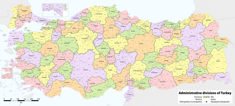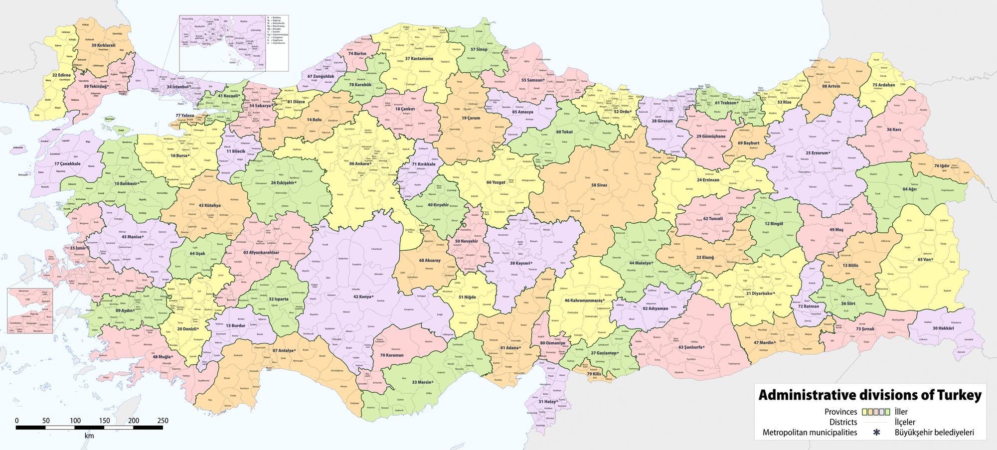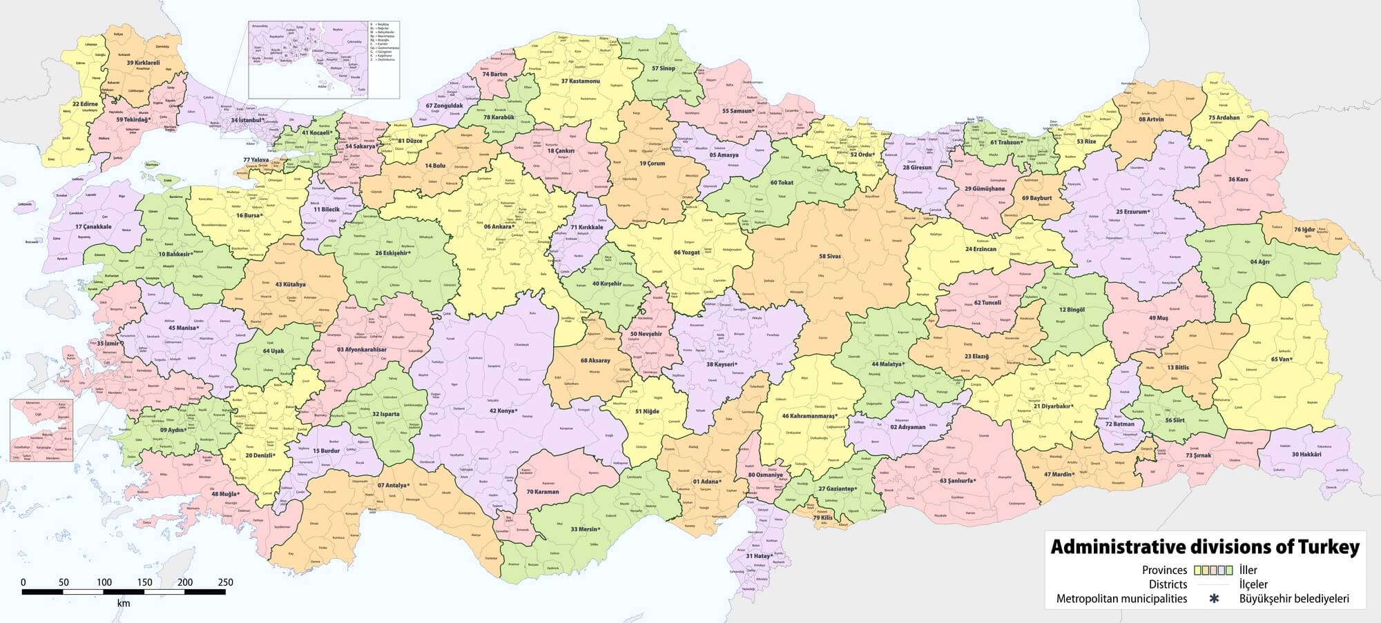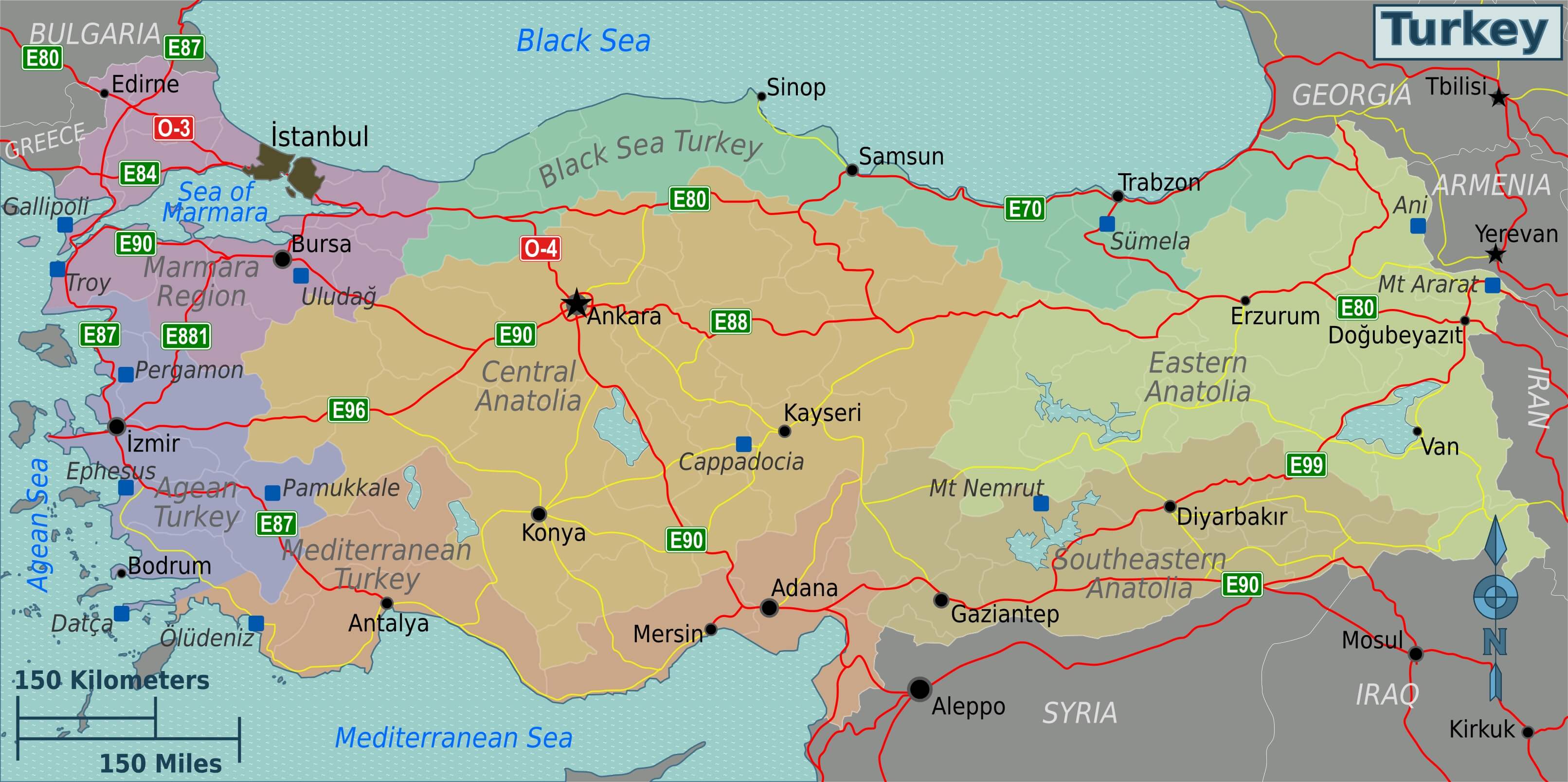 Description: Large detailed map of Turkey with cities, towns, main and secondary roads, airports, forests, rivers and lakes.