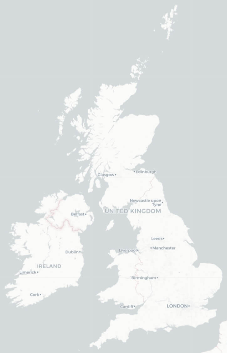 Description: Simple map of the United Kingdom with the capital and major cities.